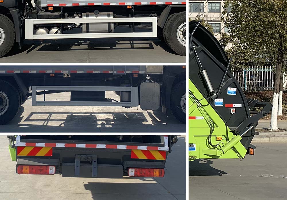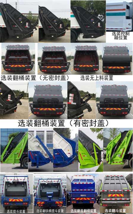 | 其他 | 该车用于将垃圾自行压实装入、转运和卸料的专用汽车;选装无上料装置、摆臂机构和全密封机构时,整车长(mm)/后伸(mm)对应关系为:8450/0;选装翻桶机构和半密封机构时,整车长(mm)/后伸(mm)对应关系为:8830/380;选装不同箱体外观;选装带后密封盖装置;侧防采用Q235材质螺栓连接在大梁上,后防护因专用装置替代,离地高度(mm):480;安装具有卫星定位功能的行驶记录仪,选装直接供电式ETC车载装置;ABS防抱死制动系统生产厂家/型号:1.长春科密汽车制动有限公司/CM4XL;2.浙江万安科技股份有限公司/VIE ABS-II;发动机型号与油耗值(L/100km)的对应关系为:CA6DLD-22E6/26.75,CA6DLD-22E6/26.53.对应最大净功率为162KW.仅选用4500轴距. | ||