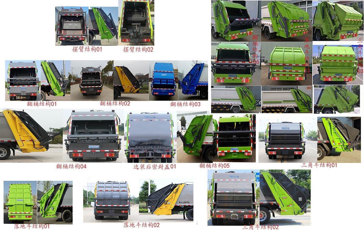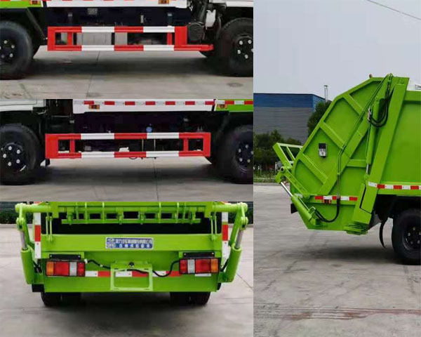 | 其他 | 1.专用装置:箱体和压缩装置,主要用于城镇环卫垃圾的运输;2.该车长度/轴距/后悬/后伸量对应关系(mm):6950/3360/2175/340,选装翻桶结构、三角斗结构、半密封斗结构,长度/轴距/后悬/后伸量对应关系(mm):6950/3360/2175/340,选装摆臂结构、落地斗结构,长度/轴距/后悬/后伸量对应关系(mm):6610/3360/2175/0。3.防护材料:Q235A,连接方式:左右侧面防护采用焊接连接,后部防护由专用装置代替,离地高度为430mm;4.ABS型号/厂家:VIE ABS-II/浙江万安科技股份有限公司;5.发动机型号与油耗值对应关系为(L/100km):JX4D30D6H/13.9;6.随底盘选装驾驶室,选装直接供电的ETC | ||