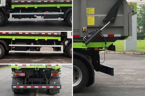 | 其他 | 该车通过垃圾箱、翻桶机构、压填机构,液压系统、电气控制系统等装置,实现垃圾收集及卸料的作业功能;该车后伸155mm,标配时整备质量7300kg,额定载质量3055kg;挡桶杆为选装,选装挡桶杆时整车高度为3185mm;未选装挡桶杆时整车高度为2800mm;选装新上装时的整备质量7425kg,额定载质量2930kg,整车高3130mm;标配、选配侧面防护装置的材料均为铝合金,连接方式均为螺栓连接;后防护装置材料为Q345A,与车辆连接方式为螺栓连接;后部防护装置的断面尺寸为180×65mm,离地高度为390mm;随底盘装4HK1-TCG61,4HK1-TCG60发动机,对应的油耗值(L/100km)均为17.7;随底盘装有ABS,ABS及控制器型号为:APG3550500H1,生产厂家为:浙江亚太机电股份有限公司.还可选装后处理保护罩、后下部外观等. | ||