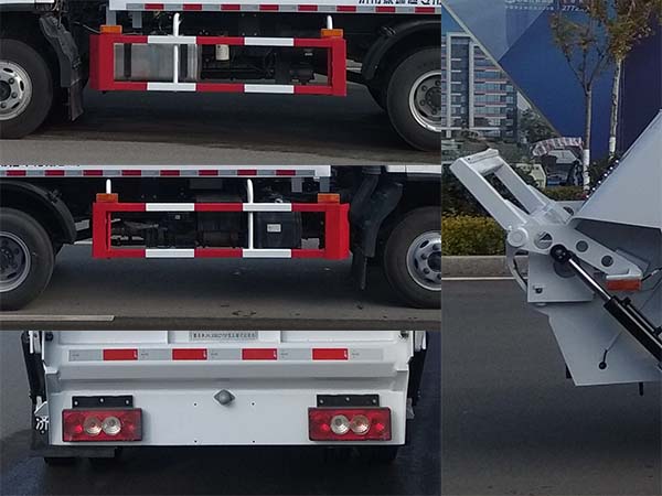 | 其他 | 发动机F3.8NS6B156、CY4SK261、D30TCIF1、F2.8NS6B156、Q28-130C60对应的油耗值分别为14.90,16.09,16.19 ,15.39,16.14 (L/100km);侧防护采用Q235A材质,侧防护采用螺栓与车架联接,后下部防护装置由专用装置替代,离地高度为490mm;该车用于垃圾收集和转运,主要专用装置为箱体总成;齿轮油泵等。该车二种配置,A带翻筒装置,基本型, 整车长6950mm,后伸400mm,;B选装不带翻筒装置,整车长6550mm;装配具有卫星定位功能的行驶记录仪;ABS系统型号:ABS-VI.E;生产企业:广州瑞立科密汽车电子股份有限公司.ABS系统型号:ABS-E;生产企业:威伯科汽车控制系统(中国)有限公司。选装ETC,ETC车载装置型号:W-180C,ETC车载装置生产企业:北京万集科技股份有限公司。随底盘选装油箱位置 | ||