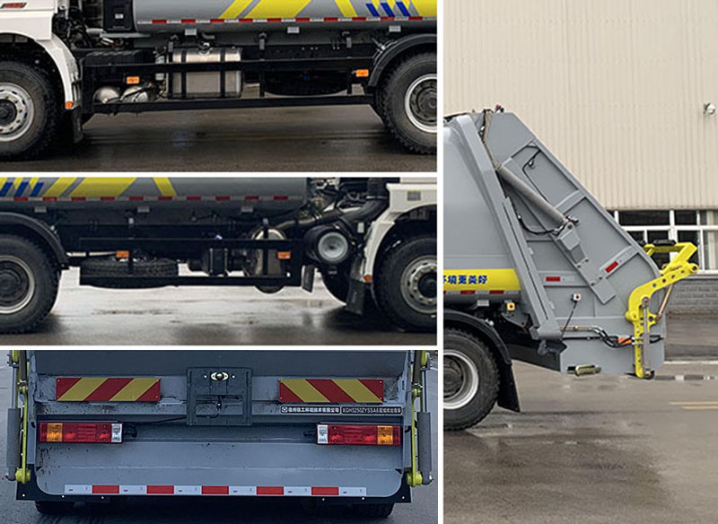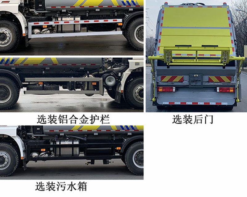 | 其他 | ABS型号:ZQFB-V;ABS生产企业:西安正昌电子股份有限公司;安装有具有卫星定位功能的行驶记录仪;选装描述:仅选用4375+1350,4375+1400轴距;选装后门,选装污水箱,随底盘选装驾驶室前围,前保险杠外观.选装前部灯具,选装后视镜;该车可选装车载ETC装置;发动机/油耗值(L/100km)对应关系为:YCK08300-60/32.4;侧后防护情况:侧防护装置材质为铝合金或Q235B,连接方式为螺栓连接.后防护材质为专用装置替代,离地高度为440mm;专用功能及装置:该车装有垃圾箱、压填机构、液压系统等工作装置,用以收集、处理、转运垃圾.后伸:330mm. | ||