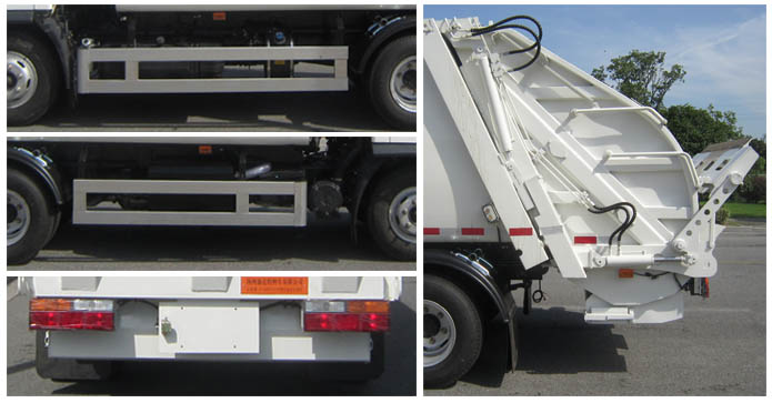 | 其他 | 具有填塞器总成装置及垃圾收集和运输功能.随底盘选装同系列排半驾驶室.仅选用3300mm轴距;整车长度6670mm,后伸265mm.左右侧防护装置采用铝型材,用螺栓螺母固定于车厢底部的连接支架上;后防护由车辆后部结构代替,离地高度为450mm.安装ABS,ABS系统生产厂家及型号为:广州瑞立科密汽车电子股份有限公司(型号:CM4XL-4S/4M).仅选用WP3NQ140E61 发动机对应油耗值:15.37(L/100km). | ||