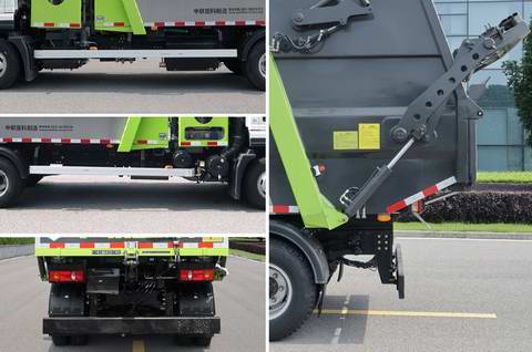 | 其他 | 该车选用底盘4200mm轴距,装有垃圾箱、压填机构、液压系统、电气控制系统等工作装置,用以收集、处理、转运垃圾作业.该车后伸194mm,挡桶杆为选装,选装挡桶杆时整车高度为3290mm,未选装挡桶杆时整车高度为2805mm;侧面防护装置的材料为铝合金,连接方式为螺栓连接;后防护装置材料为Q345A,与车辆连接方式为螺栓连接;后部防护装置的断面尺寸为180×65mm,离地高度为350mm;随底盘装有ABS,型号/生产厂家:3631010-C2000/东科克诺尔商用车制动系统(十堰)有限公司,ABS-E 4S/4M/生产厂为威伯科汽车控制系统(中国)有限公司. | ||