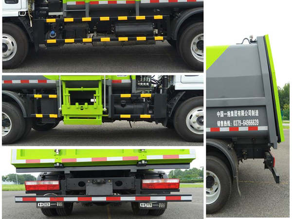 | 其他 | 该车采用底盘3308mm轴距,通过垃圾箱,翻桶机构,液压系统及电气控制系统等专用工作装置,达到垃圾收集装填及推挤卸料的作业功能;侧面防护装置的材料为Q235A,连接方式为螺栓连接;后防护装置的材质为Q345A,连接方式为螺栓连接;后部防护装置的断面尺寸为100×50mm,离地高度为450mm;随底盘装有ABS,ABS型号/厂家:ABS/ASR-12V-4S/4M/襄阳东风隆诚机械有限责任公司;随底盘装D20TCIF1,YCY24140-60,CA4DB1-11E6,ZD30D16-6N,CY4BK461,CY4BK161,Q23-115E60发动机对应油耗值均为16.2L/100km,Q28-130E60发动机对应的油耗值为15.9L/100km;随底盘选装驾驶室外观. | ||