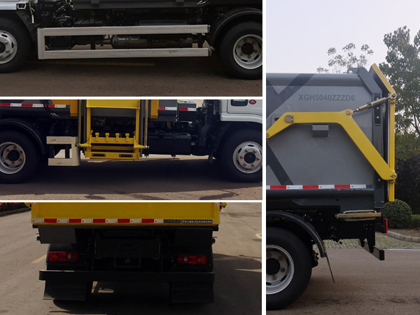 | 其他 | 该车用于垃圾的收集和转运,主要作业装置有垃圾厢、提桶装置等.仅选用3308mm轴距.侧防护材料为铝合金,后防护材料为Q345B,均与车辆采用螺栓连接;后防护断面尺寸为100mm×50mm,离地高度为445mm. ABS型号/厂家:ABS/ASR-12V-4S/4M/襄阳东风隆诚机械有限责任公司.发动机/油耗值(L/100km)对应为CY4BK161/11.4,CY4BK461/11.4,ZD30D16-6N/11.4,CA4DB1-11E6/11.4,YCY24140-60/11.4,D20TCIF1/11.4,Q23-115E60/11.4,H20-120E60/11.4,CA4DB1-13E6/11.4.随底盘选装驾驶室. | ||