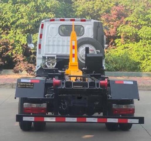 随底盘选装驾驶室;选装车辆后部结构.整车长/后悬/轴距对应关系为(mm):5540/1177/3308, 5460/1097/3308, 5102/1097/2950,4852/1097/2700;侧防护材料Q235,螺栓连接;后防护材料Q235,焊接连接,后部防护装置断面尺寸(宽×高):50×120(mm),后部防护离地高度370mm; ABS型号/厂家:ABS/ASR-12V-4S/4M/襄阳东风隆诚机械有限责任公司;发动机与油耗值(L/100km)的对应关系为:CA4DB1-11E6/11.4,CY4BK161/11.4,CY4BK461/11.4,D20TCIF1/11.4,YCY24140-60/11.4,ZD30D16-6N/11.4,CA4DB1-13E6/11.4,Q23-115E60/11.4,H20-120E60/11.4,Q28-130E60/11.4;该车用于垃圾的收集清运,主要专用装置为勾臂.该车型可选装ETC 车载装置. |