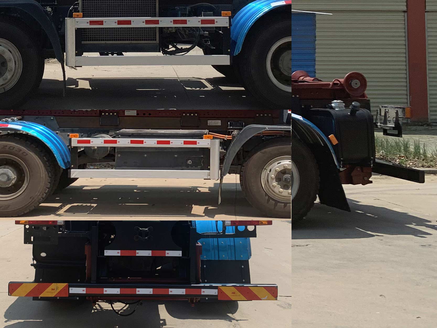 | 其他 | ABS系统型号/生产企业:ABS8/克诺尔商用车系统企业管理(上海)有限公司,CM4XL-4S/4M/广州瑞立科密汽车电子股份有限公司,安装有卫星定位的行驶记录仪;动力蓄电池种类:磷酸铁锂蓄电池;生产企业:深圳市比亚迪锂电池有限公司(单体),汕尾比亚迪汽车有限公司(总成);驱动电机类型:永磁同步电机,生产企业:长沙市比亚迪汽车有限公司,额定功率250kW,峰值功率390kW;随底盘选装监控摄像头、驾驶室顶灯、导流板、铝制轮辋、黑底Logo、车型字标、不同结构不同高度的电池包罩、无门护板,选装BSD声光报警器;侧后防护情况:侧防护材料:铝合金;连接方式:螺栓连接。后防护材料:Q355B;连接方式:螺栓连接。后防护截面尺寸宽×高(mm):55×120;离地高度:450mm;该车主要通过勾臂装置及其液压系统,对垃圾箱箱体进行拉箱上车、举升卸料、卸箱下地等动作,并能对垃圾箱箱体进行转送运输的功能。选装直接供电ETC车载装置。 | ||