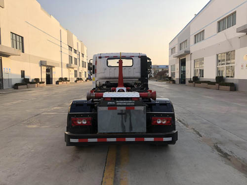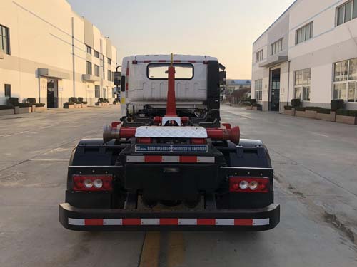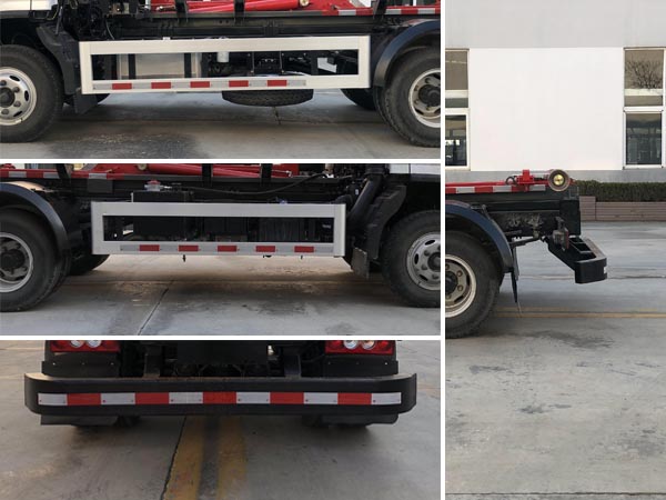 | 其他 | 车辆主要用于城乡垃圾的收集、中转和运输,专用装置为装卸功能的拉臂钩.仅选用3360mm轴距.随底盘选装限速装置,最高车速80km/h.选装前围及灯具.选装后封板.选装新式车辆外部标识牌.选装ETC车载装置.ABS系统型号/生产企业:ABS-E/威伯科汽车控制系统(中国)有限公司,ABS-VI·E/广州瑞立科密汽车电子股份有限公司,ABS8.8 ECU 24V/东科克诺尔商用车制动系统(十堰)有限公司.发动机/燃料消耗量(L/100km)对应关系:F3.8NS6B156/16.20,F2.8NS6B156/15.39,CY4SK261/16.09,D30TCIF1/16.19,D25TCIF1/14.01.车辆侧面防护装置的材料材质为铝合金,连接方式为螺栓连接.后下部防护装置的材料材质为Q235钢,连接方式为焊接,断面尺寸(mm)为80×160,最大离地高度为410mm. | ||