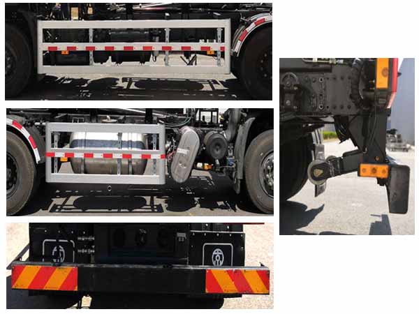 | 其他 | 1、车辆左右侧防护材质为铝合金型材,侧防护与防护支撑采用螺栓连接。车辆后下部防护材质为Q235B,采用焊接和螺栓连接方式。后下部防护断面尺寸为:160mm×70mm,离地高度为:480mm。2、该车安装具有卫星定位功能的行驶记录仪。3、ABS型号/生产厂家:3631010-C2000/东科克诺尔商用车制动系统(十堰)有限公司,ABS8/东科克诺尔商用车制动系统(十堰)有限公司,4460046450/威伯科汽车控制系统(中国)有限公司,JABS/焦作博瑞克控制技术有限公司。4、此车采用伸缩臂拉臂钩等垃圾吊装机械改装而成,主要用于城市垃圾集中转运。5、车辆仅选用4500mm轴距底盘。6、DDi50E190-60发动机油耗值为23.9;D4.5NS6B190发动机油耗值为24.4;D6.7NS6B230发动机油耗值为23.7;B6.2NS6B210发动机油耗值为23.8;B6.2NS6B230发动机油耗值为23.8。7、随底盘选装驾驶室。8、选装后处理器隔热罩。9、选装污水收集罐的位置。 | ||
