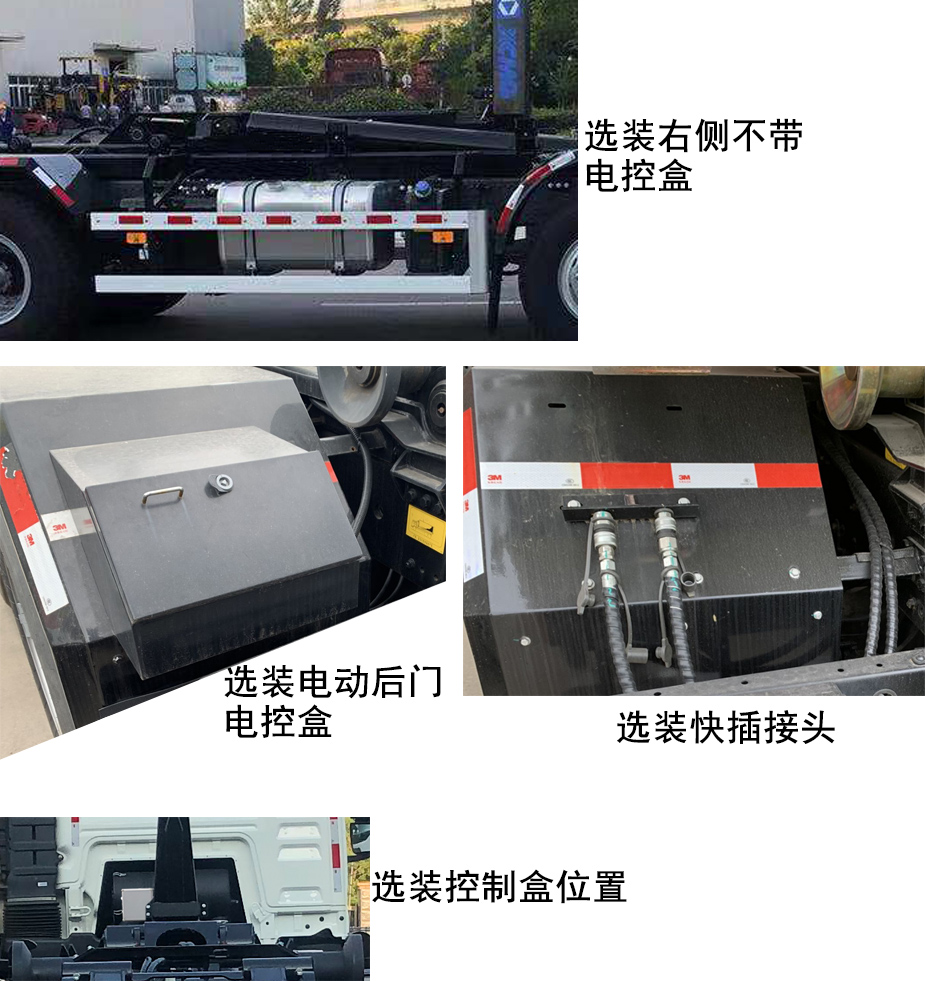 | 其他 | 该车通过液压系统,实现对垃圾的装载及卸料的作业功能.仅选用1800mm+3800mm+1350mm轴距.侧防护材料为铝合金,后防护材料为Q345,均与车辆采用螺栓连接;后防护断面尺寸为140mm×80mm,离地高度为440mm. 发动机及油耗(L/100km)对应关系为:MC07.31-60/36.9,MC07.34-60/36.9,WP8.350E61/36.8, MC11.44-60/37.2,MC11.40-60/37.2,MC07.33-60/37.1,MC07H.33-60/37.1,MC07H.35-60/37.1,WP9H350E62/36.8,WP10H400E62/37.1,MC11.40-61/37.2,MC11.43-61/37.2,MC11.46-61/37.2.该车安装具有卫星定位功能的行驶记录仪.随底盘选装限速装置,最高车速(km/h)为80或89;随底盘可不选装遮阳罩,可不选装玻璃后风窗.ABS系统控制器生产企业/型号为威伯科(上海)管理有限公司/4460046300;选装EBS,EBS系统控制器生产企业/型号为威伯科(上海)管理有限公司/EBS3.该车可选装ETC车载装置.选装右侧不带控制盒,选装快插接头,选装电动后门控制盒、选装控制盒位置. | ||