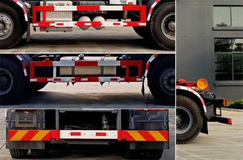 | 其他 | 1、该车主要用于垃圾转运,专用装置为勾臂;2、随底盘选装驾驶室,随底盘选装前部、后部灯具样式;3、整车外形长/前悬/轴距/后悬对应关系为(mm):8900/1450/1800+3025+1400/1225,8900/1450+1800+3050+1350/1250,9050/1450/1800+3200+1350/1250,9450/1450/1800+3600+1350/1250,9475/1450/1800+3575+1400/1250,9652/1450/1800+3800+1350/1252,整备质量与额定载质量对应关系为:13100kg/17770kg(2人)/17705kg(3人),12800kg/18070kg(2人)/18005kg(3人);4、侧防护材料:Q235A碳钢,连接方式:左右侧面防护与副梁采用焊接连接,后下部防护与车架采用螺栓连接,材质为Q235B碳钢,后部防护断面尺寸(mm):120×60,后部防护离地高度(mm):440;5、ABS系统控制器生产企业/型号为威伯科(上海)管理有限公司/4460046300;选装EBS,EBS系统控制器生产企业/型号为威伯科(上海)管理有限公司/EBS3;6、选用发动机型号与油耗值(L/100km)对应关系为:MC07.31-60/37.2,MC07.34-60/37.2,MC07.33-60/37.2,WP8.350E61/37.2,MC07H.29-60/37.2,MC07H.33-60/37.2,MC07H.35-60/37.2,WP7.300E61/37.2;7、选装限速装置,限速89km/h,安装具有卫星定位功能的行驶记录仪,选装ETC车载装置.选装新外形结构。 | ||