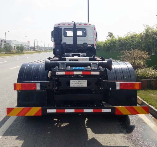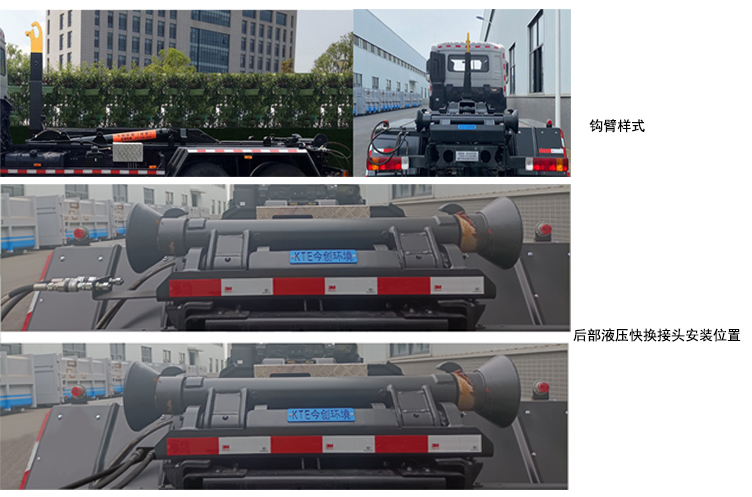 | 其他 | 1.该车用于垃圾的收集清运,主要专用装置为钩臂;2.侧,后防护材料均采用Q235,连接方式为螺栓连接,后部防护断面尺寸(mm):125×50,离地高度460mm;3.随底盘装D6.7NS6B290型发动机,对应的油耗值(L/100km)为:32.0;4.ABS型号/生产厂家:3631010-C2000/东科克诺尔商用车制动系统(十堰)有限公司,ABS 8/东科克诺尔商用车制动系统(十堰)有限公司,4460046450/威伯科汽车控制系统(中国)有限公司.安装带有卫星定位功能的行驶记录仪;6.随底盘选装高度不同的驾驶室;选装前雾灯;选装驾驶室顶部装饰灯;选装驾驶室前面罩;选装前保险杠及前部灯具,选装后视镜;选装后部灯具;驾驶室前脸扰流罩为选装件;驾驶室卧铺侧窗选装装饰板;选装踏步结构;选装后背式排气管. 7.仅选装4350+1350(mm)轴距.8.选装挡泥板样式.9.选装钩臂样式.10.选装后部液压快换接头安装位置. | ||