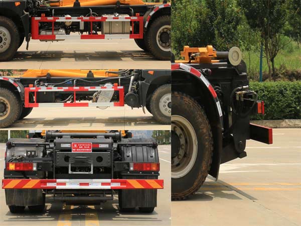 | 其他 | 1、该车用于收集,转运城市垃圾,主要装置是勾臂、液压系统;仅选用4500mm轴距改装2、侧防护材料采用Q235B,连接方式螺栓连接,后防护采用Q235B,焊接连接,下边缘离地高度490mm3、ABS型号及生产厂家为:3631010-C2000/东科克诺尔商用车制动系统(十堰)有限公司,J ABS/焦作博瑞克控制技术有限公司.该车安装具有卫星定位功能的行驶记录仪;发动机型号与油耗值对应关系为(L/100km):B6.2NS6B210/24.5,B6.2NS6B230/24.5,YCS04200-68/24.5,YCS06200-60/24.1;该车型可选装ETC车载装置,随底盘选装驾驶室,选装油箱、尿素罐、蓄电池、储气罐、排气处理器的安装位置及样式,选装上装样式,选装尾灯样式. | ||