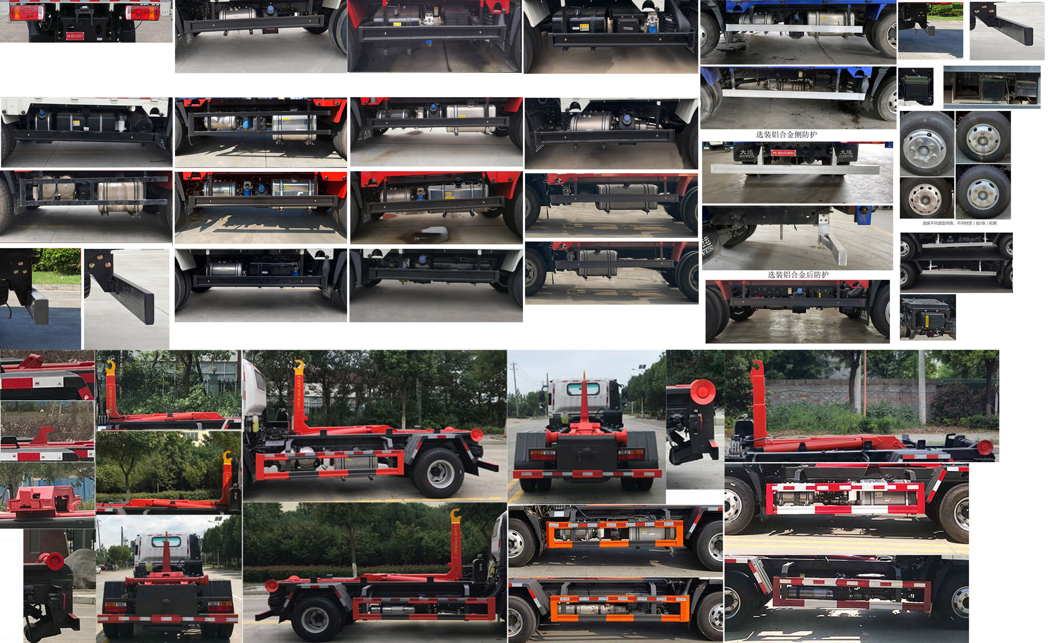 | 其他 | 选装排半驾驶室;选装前面罩、前部灯具、前保险杠;选装遮阳罩;选装后视镜及安装位置;选装轮罩;选装固定锁紧,横向锁紧,液压锁紧,选装大臂结构;选装后组合灯;货箱、轮毂、油箱、储气筒可选用铝合金或铁质;可不装备胎;选装防护装置样式。侧防护装置材料Q235(可选6061铝合金),左右对称,螺栓连接;后防护装置离地高度为450mm(420mm),材料Q345B,螺栓连接,截面高度和厚度为120mm×30mm(可选后防护材料Q235B,截面高度和厚度为120mm×50mm、100mm×50mm;可选后防护材料6061铝合金,截面高度和厚度为100mm×50mm)。外廓尺寸长/轴距/前悬/后悬(mm)对应关系:5550/3300/1150/1100,5995/3300/1150/1545,5995/3400/1150/1445,5995/3550/1150/1295,5995/3300/1190/1505,5650/3400/1190/1060,5995/3400/1190/1405,5995/3550/1190/1255,5995/3300/1230/1465,5995/3400/1230/1365,5800/3550/1230/1020,5995/3550/1230/1215,5995/3800/1150/1045。ABS生产厂家:威伯科汽车控制系统(中国)有限公司,型号:ABS-E4S/4M;浙江万安科技股份有限公司,型号:VIE ABS-II;广州瑞立科密汽车电子股份有限公司,型号:CM4XL-4S/4M;芜湖伯特利汽车安全系统有限公司,型号:WBTL-ABS。D25TCIF1、D30TCIF1、D30TCIF2、D40TCIF1、D40TCIF2、YCY30165-60、YCS04180-68、Q28-130E60、YCY30150-60、D25TCIF5、YCY24140-60、Q25-152E60发动机对应油耗值(L/100km)均为11.4。 | ||