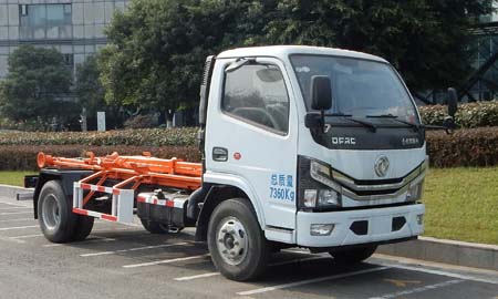 | 其他 | 该车装备拉臂式自装卸装置,用于垃圾厢的收放、运输和垃圾倾卸.随底盘选装驾驶室,选装前面罩,前保险杠,前组合灯具,选装后视镜.仅选用3308mm轴距.侧面防护装置材料:Q235,连接方式:螺栓连接;后下部防护装置材料:Q235,连接方式:螺栓连接,断面尺寸(mm):100×50×3,离地高(mm):450.采用的发动机型号及油耗值(L/100km)对应关系:CY4BK461/16.2,CA4DB1-11E6/16.3,CY4BK161/16.2,D20TCIF1/16.3,Q28-130E60/15.9,H20-120E60/16.1,CA4DB1-13E6/16.2,YCY24140-60/16.3,Q23-115E60/14.5,ZD30D16-6N/16.3.ABS型号/厂家:ABS/ASR-12V-4S/4M /襄阳东风隆诚机械有限责任公司.该车型可选装ETC车载装置. | ||
