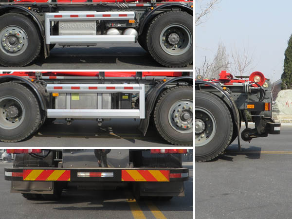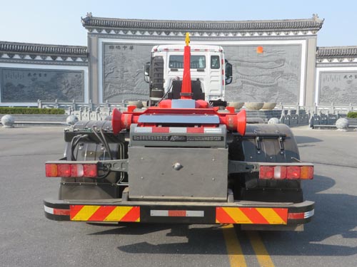 | 其他 | 车辆主要用于城乡垃圾的收集、中转和运输,专用装置为装卸功能的拉臂钩.仅选用1800+3050+1350mm轴距.随底盘选装限速装置,最高车速(km/h)为89或80,限速80km/h时选装前置排气系统,选装爆胎应急防护装置.选装驾驶室.选装前部灯具.可不选装驾驶室顶部天线.选装车道偏离报警和车辆前向碰撞预警系统.选装备胎支架,对应整备质量12640kg,额定载质量18230kg(驾驶室准乘人数2人);18165kg(驾驶室准乘人数3人).选装ETC车载装置.ABS系统控制器生产企业/型号为威伯科(上海)管理有限公司/4460046300;选装EBS,EBS系统控制器生产企业/型号为威伯科(上海)管理有限公司/EBS3.安装具有卫星定位功能的行驶记录仪.发动机与燃料消耗量(L/100km)对应关系为MC07.31-60/37.2,MC07.34-60/37.2,MC07H.33-60/37.2,WP8.350E61/37.2,MC07H.29-60/37.2,MC07H.33-60/37.2,MC07H.35-60/37.2,WP7.300E61/37.2.车辆侧面防护装置的材料材质为铝合金,连接方式为螺栓连接.后下部防护装置的材料材质为Q235钢,连接方式为焊接,断面尺寸(mm)为80×160,最大离地高度为435mm. | ||