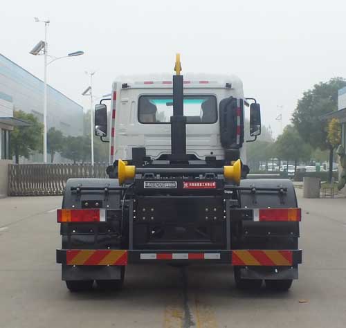 | 其他 | 该车仅采用4500mm轴距.侧防护和后防护材料材质为Q345B,连接方式为螺栓连接,后防护截面尺寸为130×60(mm),离地间隙为465mm.AABS型号/生产厂家:3631010-C2000/东科克诺尔商用车制动系统(十堰)有限公司,ABS 8/东科克诺尔商用车制动系统(十堰)有限公司, 4460046450/威伯科汽车控制系统(中国)有限公司,J ABS/焦作博瑞克控制技术有限公司.该车安装具有卫星定位功能的行驶记录仪.随底盘选装高度不同的驾驶室;选装前雾灯;选装驾驶室顶部装饰灯;选装驾驶室前面罩;选装前保险杠及前部灯具,选装后视镜;选装后部灯具;选装驾驶室轮罩;选装驾驶室前脸扰流罩;选装驾驶室卧铺侧窗装饰板,选装一体式后视镜,选装前下视镜,选装不同结构的车门裙板.发动机D4.5NS6B190、D6.7NS6B230、DDi50E190-60、B6.2NS6B210、B6.2NS6B230 对应的油耗值分别是(L/100km): 24.4、23.7、23.9、23.8、23.8.该车主要用于垃圾运输,专用装置为拉臂装置.随底盘选装驾驶室. | ||