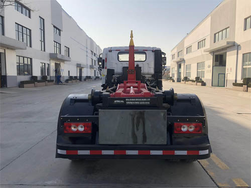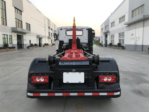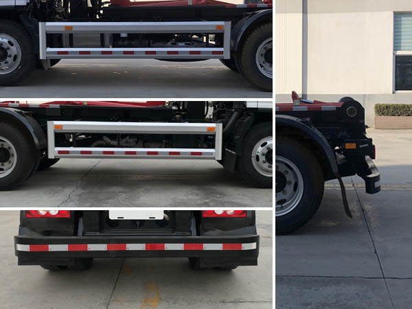 | 其他 | 车辆主要用于城乡垃圾的收集、中转和运输,专用装置为装卸功能的拉臂钩.仅选用3800mm轴距.随底盘选装限速装置,最高车速80km/h.选装前围及灯具.选装后封板.选装新式车辆外部标识牌.ABS系统控制器型号/生产企业:ABS-E/威伯科汽车控制系统(中国)有限公司,ABS-VI·E/广州瑞立科密汽车电子股份有限公司.车辆侧面防护装置的材料材质为铝合金,连接方式为螺栓连接.后下部防护装置的材料材质为Q235钢,连接方式为焊接,断面尺寸(mm)为80×160,最大离地高度为415mm. | ||