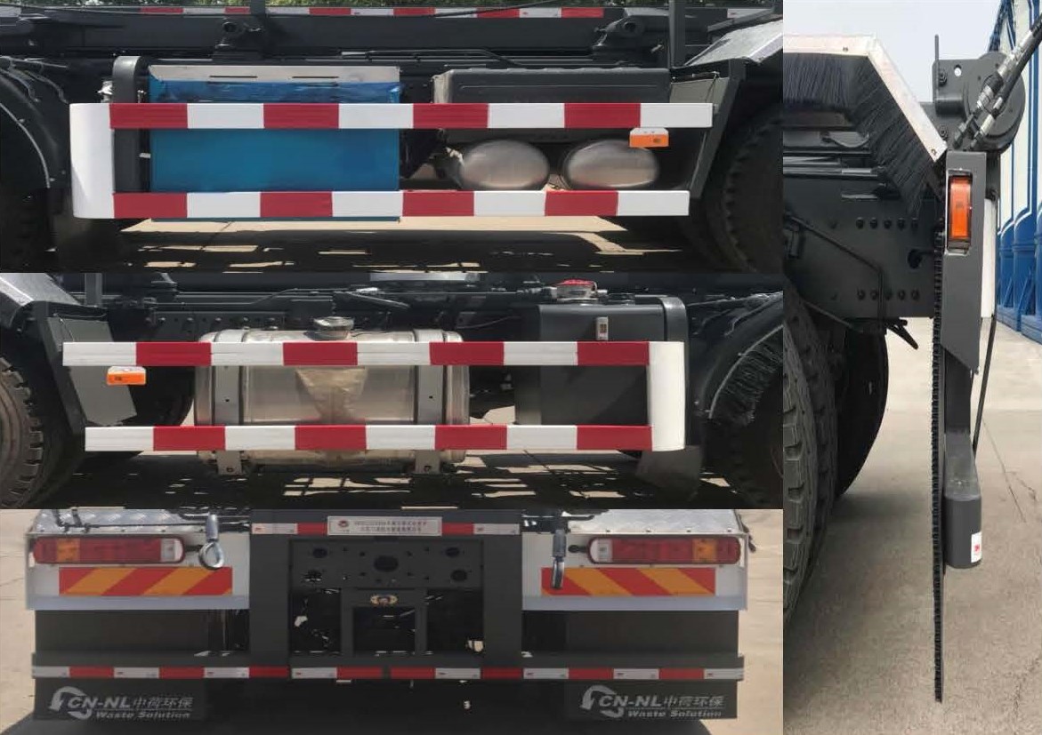 | 其他 | 该车为车厢可卸式垃圾车,专用装置为钢丝牵引机构。选装件1为车载防坠系统,选装件2为框架牵厢机构,选装件3为框架牵厢机构。选装件1和2时整备质量为12850kg; 选装件3时整备质量为13700kg,选装侧防护材料铝合金6063-T5,选装直接式ETC车载装置。侧防护装置与副车架焊接链接,材质Q235,后防护装置为金属护栏,材质Q235,连接方式与副车架焊接连接,后防护截面尺寸:120mm×100mm,离地高度400mm。随底盘配装ABS,ABS防抱死制动系统生产厂家:威伯科(上海)管理有限公司,型号:4460046300。安装具有卫星定位功能的行驶记录仪。仅选用轴距:1800+3050+1350(mm);轮胎型号: 315/80R22.5 18PR,295/80R22.5,12R22.5,12.00R20 18PR,11.00R20,315/60R22.5;发动机型号: WP8.350E61,MC07.34-60,WP9H350E62,MC07H.35-60,MC07H.29-60,MC07.31-60,MC07H.33-60,MC11.40-60,MC11.40-61,MC11.43-61。发动机/油耗值(L/100km)对应关系为: WP8.350E61/36.8,MC07.34-60/36.9,WP9H350E62/36.8,MC07H.35-60/37.1,MC07H.29-60/37.1,MC07.31-60/36.9,MC07H.33-60/37.1,MC11.40-60/37.2,MC11.40-61/37.2,MC11.43-61/37.2。发动机净功率值(kw): WP8.350E61为252,MC07.34-60为248,WP9H350E62为252,MC07H.35-60为254,MC07H.29-60为210,MC07.31-60为225,MC07H.33-60为237,MC11.40-60为294,MC11.40-61为294,MC11.43-61为316。 | ||