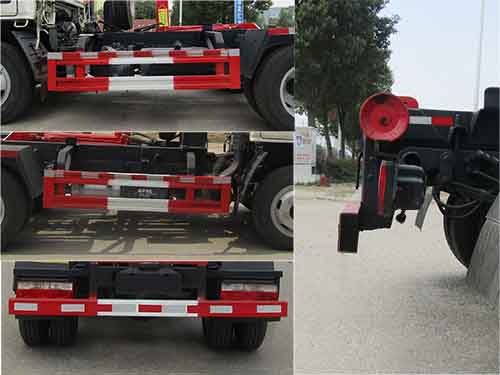 | 其他 | 该车用于垃圾转运,主要专用装置为勾臂;整车长/轴距对应关系:5500/3308,5142/2950,4892/2700;侧/后部防护材料:Q235,连接方式:螺栓连接,后防护装置的截面尺寸(宽×高)mm:60×120,离地高420mm;随底盘选装驾驶室,选装勾臂结构及手控阀,选装后部锁紧,选装横向锁紧;ABS型号/厂家:ABS/ASR-12V-4S/4M/襄阳东风隆诚机械有限责任公司;装配D20TCIF1,YCY24140-60,CA4DB1-11E6,ZD30D16-6N,CY4BK461,CY4BK161,发动机时,对应油耗分别为11.3,11.3,11.4,11.4,11.4,11.3L/100km;该车型可选装ETC车载装置. | ||
