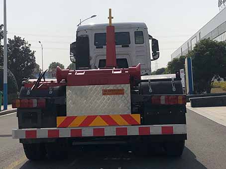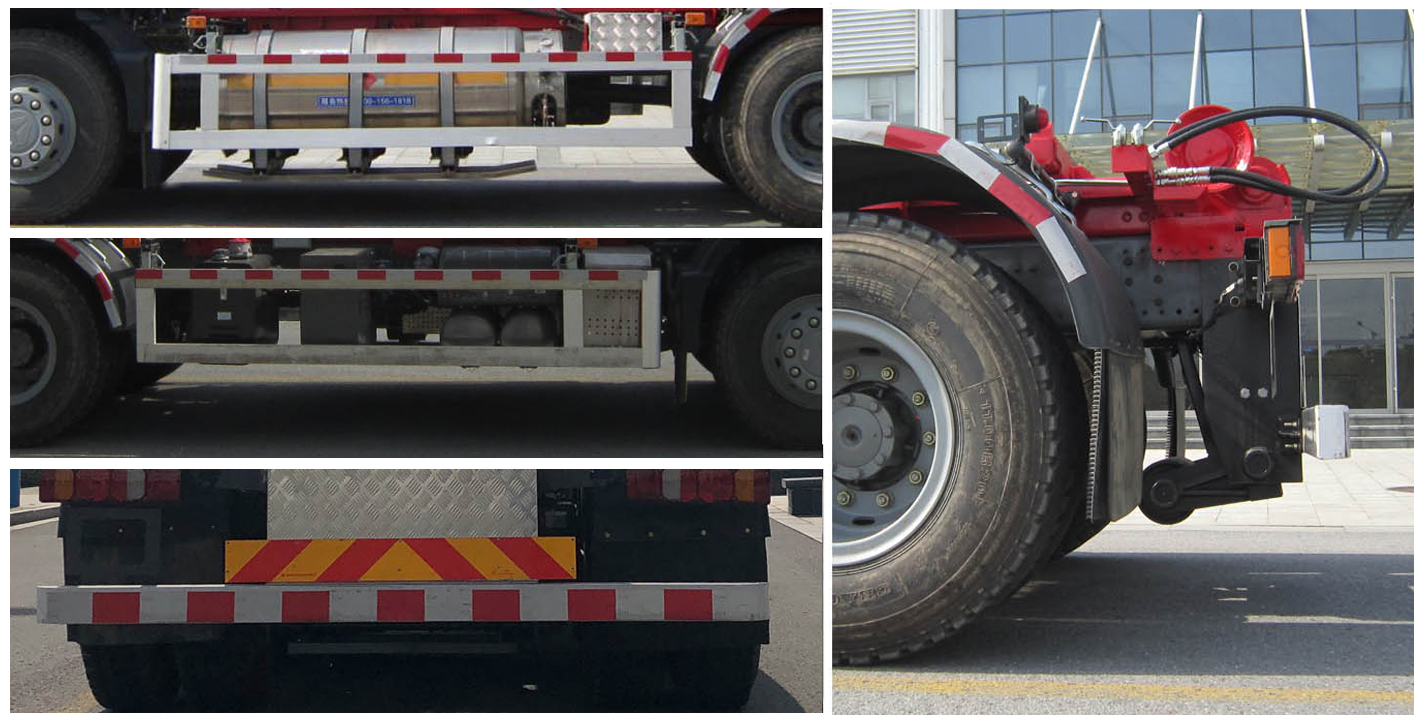 | 其他 | 具有拉臂总成工作装置及垃圾运输功能.左右侧防护装置材质铝型材,后防护材质Q235A,均与车辆采用螺栓连接;后防护断面尺寸(mm):120×80,离地高度为480mm.仅选用4300+1350(mm)轴距,.驾驶室准乘人数--额定载质量对应关系:3--13155;2--13220;安装具有卫星定位功能的行驶记录仪.安装ABS,ABS系统控制器生产企业/型号为威伯科(上海)管理有限公司/4460046300;选装EBS,EBS系统控制器生产企业/型号为威伯科(上海)管理有限公司/EBS3。 | ||