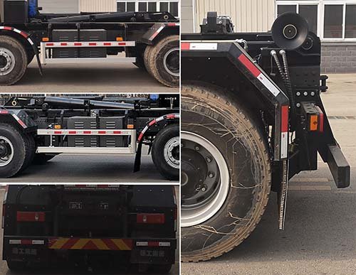 | 其他 | 该车专用装置为拉臂式自装卸装置,通过液压系统,实现对垃圾的装载及卸料的作业功能.仅选用1950+3700+1400(mm)轴距底盘;侧防护装置的材料材质为铝合金、后防护装置的材料材质:Q345;连接方式均为:螺栓联接,后部防护装置的断面尺寸(宽×高)mm:80×140,离地高475mm;驱动电机型号:TZ368XS-YBM104, 额定功率/峰值功率:245KW/365kW,生产企业:南京越博动力系统股份有限公司;驱动电机型号:TZ410XS-LKM2001, 额定功率/峰值功率:240KW/360kW,生产企业:苏州绿控传动科技股份有限公司;ABS型号:CM4XL-4S/4M,生产企业:广州科密汽车电子制动技术股份有限公司,选装ABS型号:ABS/ASR-24V-4S/4M;生产企业:东科克诺尔商用车制动系统(十堰)有限公司;蓄电池为磷酸铁锂蓄电池,生产企业:南京创源天地动力科技有限公司;合肥国轩高科动力能源有限公司;南京创源天地动力科技有限公司,单体型号/生产企业:LF105/惠州亿纬锂能股份有限公司,IFP27175200A-105Ah/合肥国轩高科动力能源有限公司,LF105/惠州亿纬锂能股份有限公司;该车装有卫星定位功能的行驶记录仪. 随底盘选装驾驶室. | ||