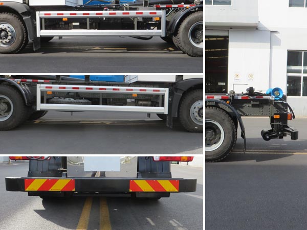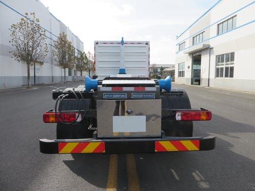 | 其他 | 车辆主要用于城乡垃圾的收集、中转和运输,专用装置为装卸功能的拉臂钩.随底盘可不选装遮阳罩.储能装置种类/生产企业:磷酸铁锂蓄电池/宁德时代新能源科技股份有限公司.技术阶段为"发展期".安装具有卫星定位功能的行驶记录仪.ABS系统控制器生产企业/型号为威伯科(上海)管理有限公司/4460046300.车辆侧面防护装置的材料材质为铝合金,连接方式为螺栓连接.后下部防护装置的材料材质为Q235钢,连接方式为焊接,断面尺寸(mm)为80×160,离地高度为460mm. | ||