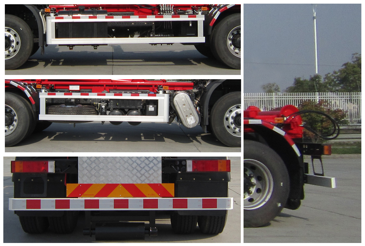 | 其他 | 具有拉臂总成工作装置及垃圾运输功能.仅选用4350mm+1350mm轴距.随底盘选装驾驶室前面罩,驾驶室前角扰流板,驾驶室前面罩,前保险杠,前部灯具,后视镜,驾驶室顶部中间三个装饰,前雾灯,驾驶室侧窗选装树脂装饰板;左右侧防护装置采用100×30×1.5铝型材用螺栓螺母与50×50×4(Q235A)槽钢形护栏架固定,护栏架再用螺栓螺母固定于固定车架左右纵梁上;后防护装置采用120×80×5的空心型钢(Q235A)与厚为8mm的钢板(Q345B)支架焊接而成,再用螺栓、螺母固定于大梁两侧,离地高度为480mm.驾驶室准乘人数--额定载质量对应关系:2--13400;3--13335;安装具有卫星定位功能的行驶记录仪.安装ABS,ABS型号/生产厂家:3631010-C2000/东科克诺尔商用车制动系统(十堰)有限公司,ABS 8/东科克诺尔商用车制动系统(十堰)有限公司,4460046450/威伯科汽车控制系统(中国)有限公司. 发动机/变速箱/油耗值对应关系:D6.7NS6B290/DC7J120TD/31.3;DDi75E300-60/9JS119TA/31.7;D6.7NS6B290/9JS119TA/32;DDi75E300-60/DC7J120TD/31.7。 | ||