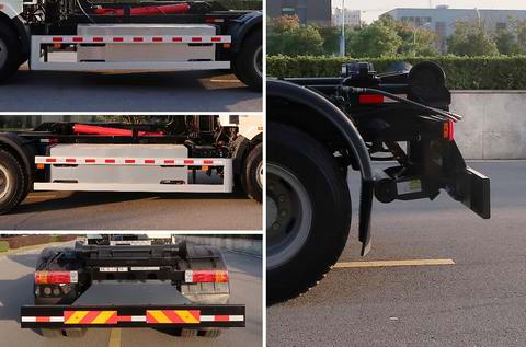| 其他 | 该车选用底盘4500mm轴距,通过拉臂装置及液压系统,实现对垃圾的装载及卸料的作业功能;标配时整备质量为8420kg,额定载质量9450kg(准乘人数2人),9385kg(准乘人数3人);选配拉臂装置2时,整备质量为8720kg,额定载质量9150kg(准乘人数2人),9085kg(准乘人数3人);侧面防护装置的材料为铝合金,连接方式为螺栓连接;后防护装置材料为Q345A,连接方式为螺栓连接,后部防护装置的断面尺寸为240×65mm,离地高度为490mm;该车安装具有卫星定位功能的行驶记录仪;该车技术阶段为"发展期",可在全国销售,电池种类:磷酸铁锂动力电池;储能装置单体型号:MFH3L8;生产企业:宁德时代新能源科技股份有限公司,随底盘装有ABS,ABS生产厂家:1.长春瑞立科密汽车电子有限公司,型号:CM4XL;ABS生产厂家:2.WABCO,型号:44600XXXX0. | ||