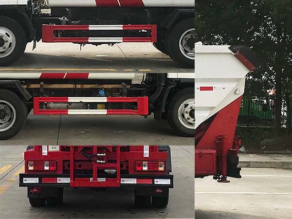 | 其他 | 1.专用装置:挂桶机构和箱体,主要用于垃圾的收集和转运,该车自卸方式为后卸;2.选装后部结构,挂桶机构,选装箱体结构;3.侧,后防护材料均为Q235,连接方式为焊接加螺栓连接,后部防护断面尺寸(mm):120×60,离地高度350mm;选装后部挂桶机构时后防护由专用装置替代,下边缘离地高:350mm;4.发动机型号/油耗(L/100km)对应关系:Q23-95E60/11.0;5.ABS生产厂家/型号:1.浙江万安科技股份有限公司/VIE ABS-II.2.广州瑞立科密汽车电子股份有限公司/CM4YL.该车型可选装ETC车载装置. | ||