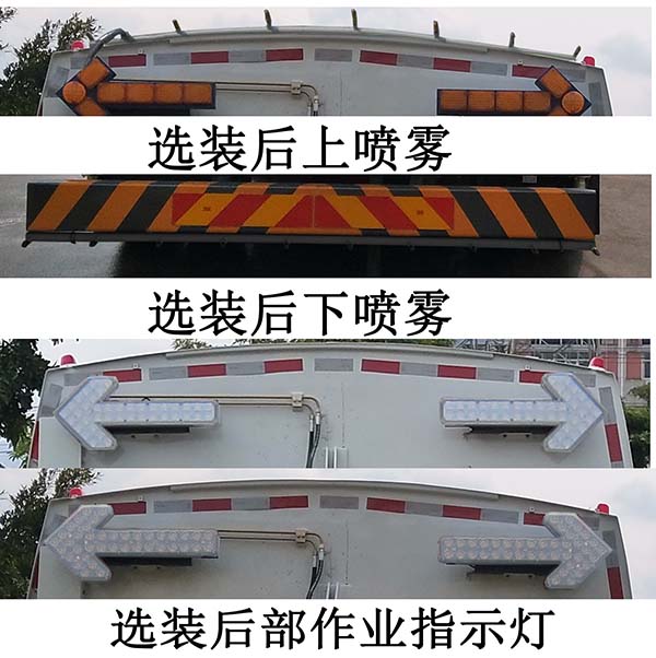 | 其他 | 仅选用5300mm轴距。该车型有两种配置:配置A(标准配置)、配置B(选装单点清淤),各配置总长(mm)/前悬(mm)对应关系如下:配置A:8860/1260;配置B:9040/1440;可选装:1、后部作业指示灯;2、后上、下喷雾装置,以上两类选装对尺寸及重量的影响可以忽略不计。随底盘选装前格栅;专用装置代替侧防护;后防护装置的材料材质为:Q235A,连接方式为:螺栓连接;后防护装置的断面尺寸(宽×高)mm为:60×200;后防护离地高430mm;ABS型号/生产厂家:J ABS/焦作博瑞克控制技术有限公司。该车通过清扫机构,采用吸扫结合,湿式除尘的工作原理对路面进行清扫作业。 | ||