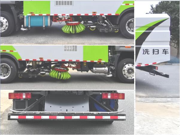 | 其他 | 随底盘选装保险杠外观,选装高位保险杠,选装踏步,选装前面罩,选装侧翼子板和踏步配色,随底盘选装左右侧置双油箱,车辆前部LOGO及饰件可选装金色,选装驾驶室各类样式;随底盘选装油浴式空滤器,储气筒,选装消声器,选装右置油箱,选装左置电瓶箱等位置样式。该车用于清扫、清洗路面垃圾,主要装置为箱体及洗扫系统装置;侧防护为专用装置代替,后防护装置采用材料Q235,连接方式螺栓连接,后部防护截面尺寸(高×宽)(mm):120×50,后部防护离地高度(mm):410。ABS型号:446 004 6300;ABS生产企业:威伯科汽车控制系统(中国)有限公司;选装EBS,EBS系统控制器生产企业:威伯科汽车控制系统(中国)有限公司,型号:EBS3;选装限速装置,限速装置限速(km/h):89.整车长/轴距/前后悬对应关系:8370/4700/1550/2120,8770/4700/1550/2520,8770/5100/1550/2120. | ||