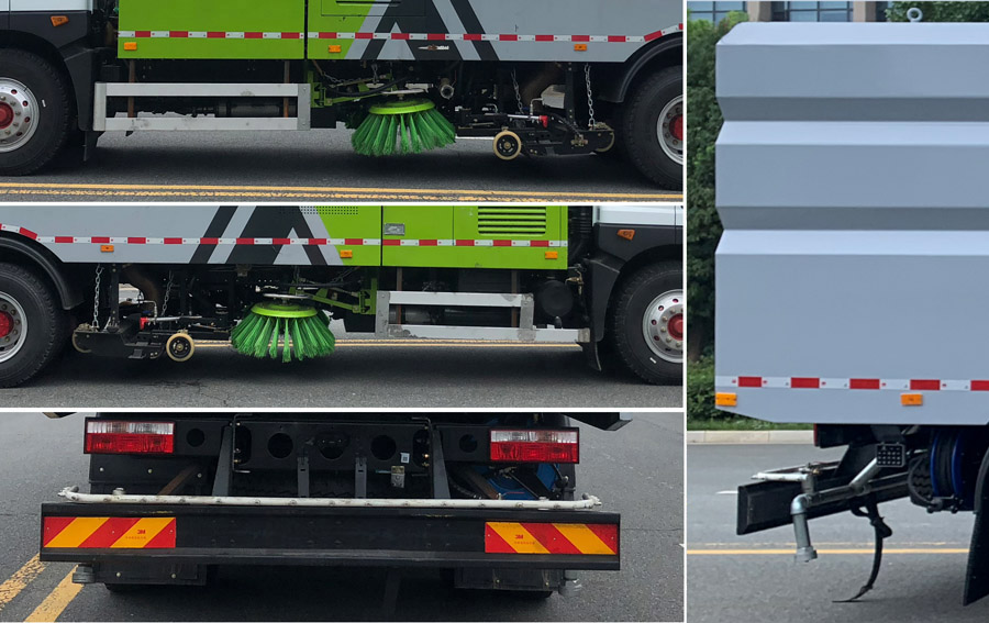 | 其他 | ABS型号:J ABS;ABS生产企业:焦作博瑞克控制技术有限公司;该车型仅选用5600mm轴距改装;侧防护装置由专用装置和护栏组成,护栏材料为铝合金,连接方式:螺栓连接,后防护材料为Q235,连接方式为焊接连接,后防护截面尺寸240×60mm,离地高度490mm;专用功能及装置:该车专用装置是垃圾箱和清扫装置,用于城市道路等路面的机械化清扫. | ||