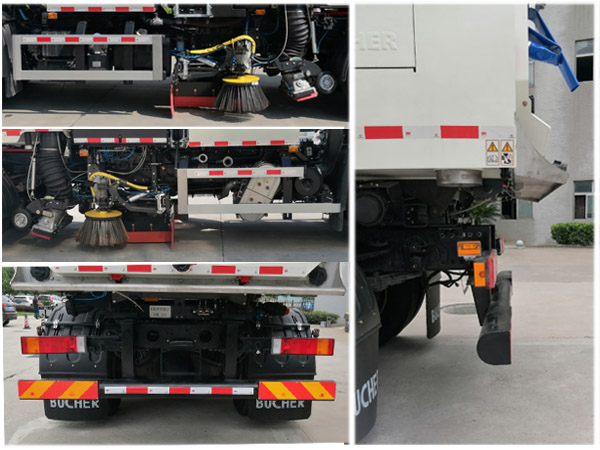 | 其他 | 1、该车装有箱体和清扫装置,对路面进行清扫作业。2、随底盘选装驾驶室外观;选装后处理隔热罩;选装箱体外观;选装前喷头架;选装前鸭嘴;选装后吸模块;选装后部排水球阀;选装吊臂。3、该车选用底盘5000mm轴距;对应不同前悬值,选装无前面板,或无前喷头架,或无前鸭嘴时,前悬为1400mm或1430mm,对应整车长为8050mm或8080mm;选装前面板,或前喷头架,或前鸭嘴时,前悬为1630mm,对应整车长为8280mm;选装无吊臂时,整车高度3390mm;选装机械吊臂时,对应整车高度3630mm,选装助力吊臂时,对应整车高度3730mm。4、选装无前面板,无后吸模块时,整备质量11600kg,额定载质量6270kg;选装前面板或选装后吸模块时,整车整备质量11900kg,额定载质量5970kg;选装前面板和后吸模块时,整车整备质量12200kg,额定载质量5670kg。5、侧防护装置由专用装置和护栏组成,护栏材料为铝合金型材,防护栏安装采用螺栓连接,后防护装置材料为Q235,后护栏截面尺寸/离地高(mm):140×140/490;当选装后吸模块时,专用装置代替后防护,离地高215mm。6、装有ABS,型号/生产厂家:3631010-C2000/东科克诺尔商用车制动系统(十堰)有限公司,ABS8/东科克诺尔商用车制动系统(十堰)有限公司,4460046450/威伯科汽车控制系统(中国)有限公司,JABS/焦作博瑞克控制技术有限公司。 | ||