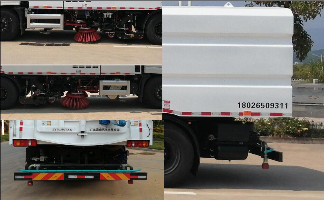 | 其他 | ABS型号:3631010-C2000,ABS 8,4460046450;ABS生产企业:东科克诺尔商用车制动系统(十堰)有限公司,东科克诺尔商用车制动系统(十堰)有限公司,威伯科汽车控制系统(中国)有限公司;发动机净功率值:D6.7NS6B230,B6.2NS6B210,B6.2NS6B230,DDi50E190-60,D4.5NS6B190发动机最大净功率分别为166kW,151kW,166kW,143kW,135kW.;选装部件名称及其相关描述:选用5300mm轴距时,整车长/前悬/后悬为9070/1400/2370mm。选用5000mm轴距时,整车长/前悬/后悬为8770/1400/2370mm;所用材料材质、连接方式以及后部防护装置的主要尺寸参数(断面尺寸和离地高度):该车左右侧防护装置通过连杆,安装板用螺栓固定在副车架上,横杆用铝合金型材,后部左右侧防护由专用装置清洗机构代替.后防护装置通过连杆,安装板用螺栓固定在底盘车大梁上,横杆用Q235A.后防:离地高度为445mm,断面为150mm×55mm.;专用功能及装置描述:专用装置为垃圾箱、水箱、洗扫机和风机.用途:道路洗扫,园林绿化,人行道,路沿,道路标线的洗扫; | ||